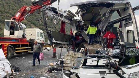Türkiyədə sərnişin avtobusu yük maşını ilə toqquşub: Ölənlər və yaralananlar var