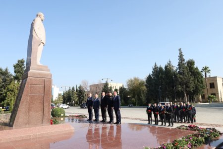 Əvvəlcə tədbir iştirakçıları Xalqımızın Ümummilli Lideri Heydər Əliyevin Yevlax şəhərinin mərkəzindəki abidəsini ziyarət edərək dahi şəxsiyyətin müqəddəs ruhuna öz ehtiramlarını bildiriblər.