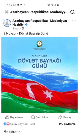 Qeyd edək ki, 9 Noyabr Azərbaycanda Bayraq Günüdür.