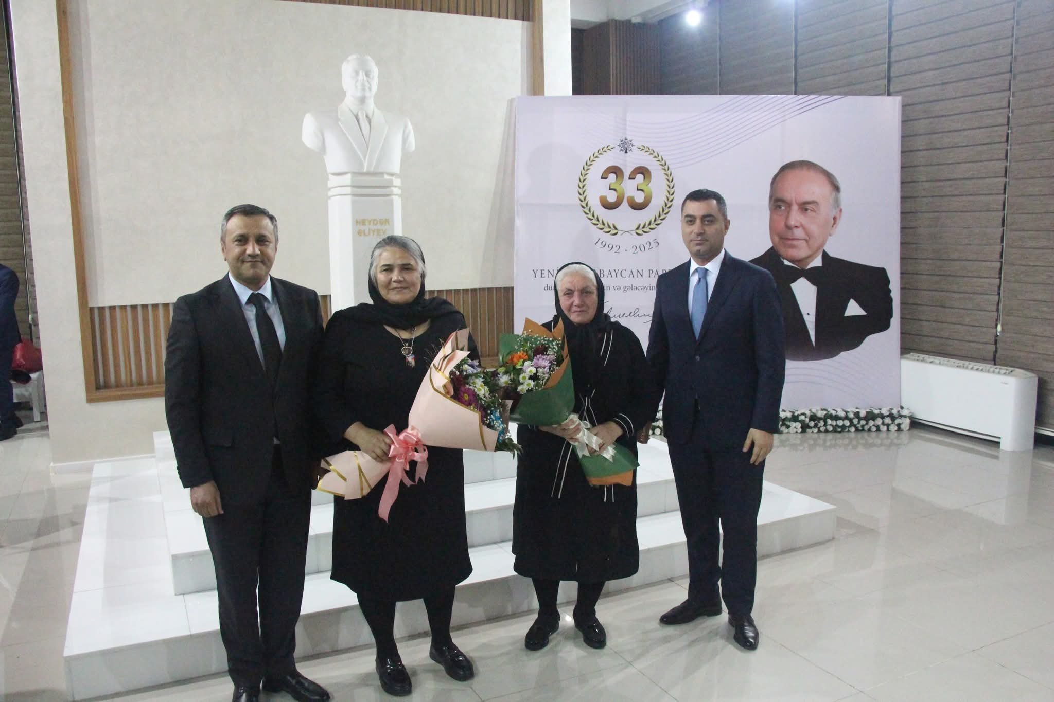Tədbir çərçivəsində Şəhid anaları Sədaqət Budaqovaya və Arzu Əyyubovaya gül buketləri təqdim olunub, vətənpərvər və qəhrəman oğullar böyütdüyünə görə onlara Yeni Azərbaycan Partiyası adından təşəkkür hissi ifadə edilib.
