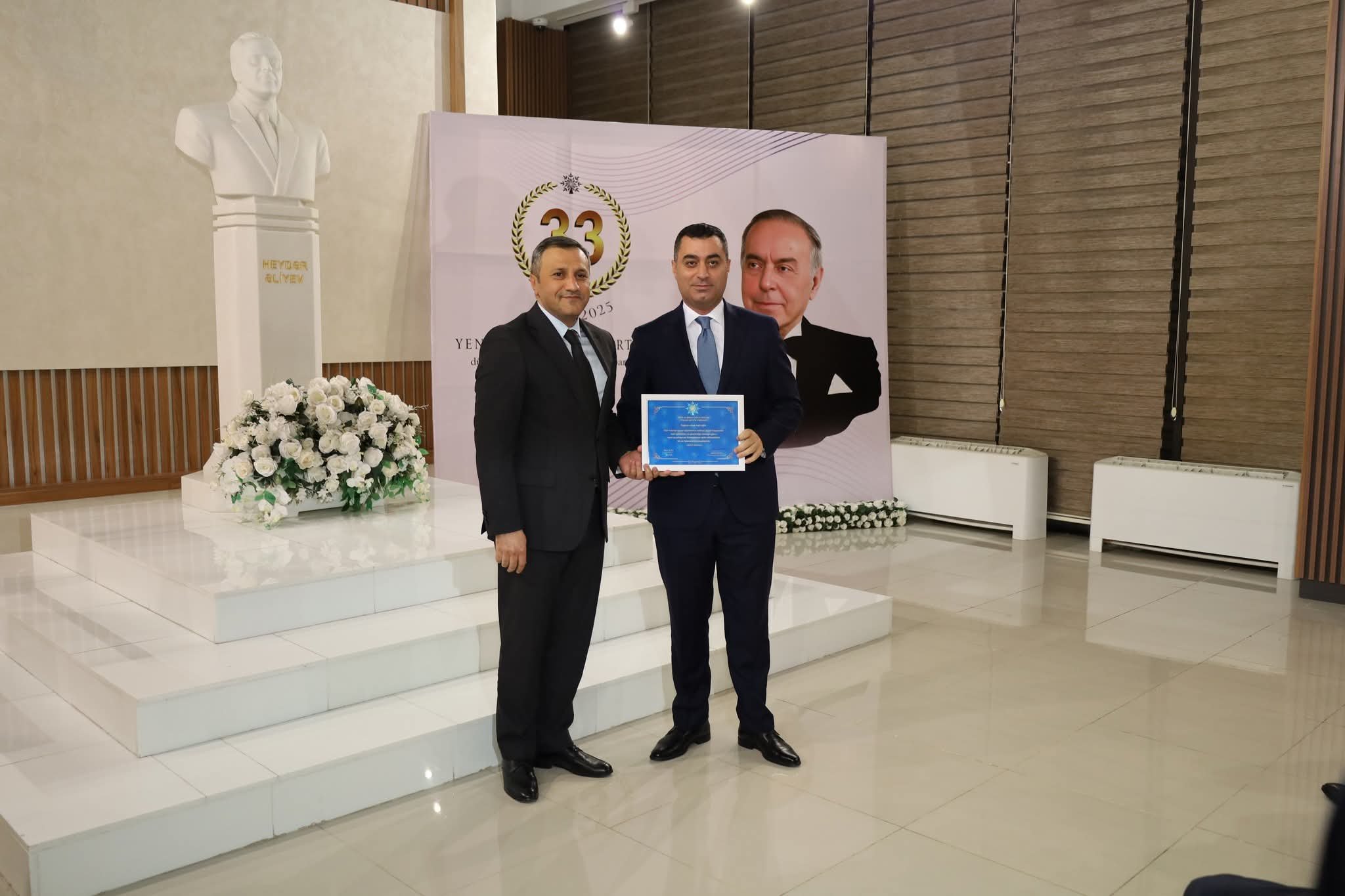 Yevlaxda Yeni Azərbaycan Partiyasının yaranmasının 33 illiyi münasibətilə tədbir keçirilib