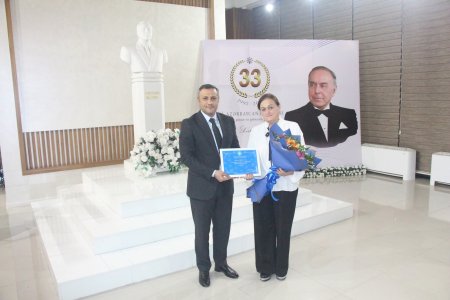 Tədbirin bədii hissəsində Fikrət Əmirov adına Gəncə Dövlət Filarmoniyasının solisti, Respublikanın əməkdar mədəniyyət işçisi Mehbarə Cəfərovanın və pianoçu Mehriban Allahverdiyevanın təqdimatında milli musiqilər səsləndirilib.