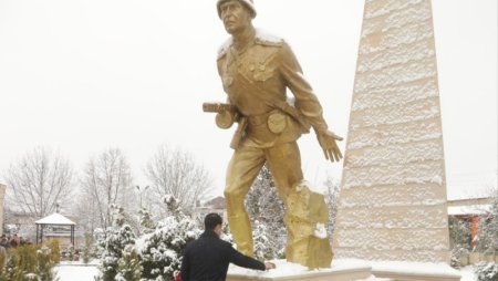 20 Yanvar günü Sovet əsgəri abidəsinə gül qoydu - FOTOFAKT