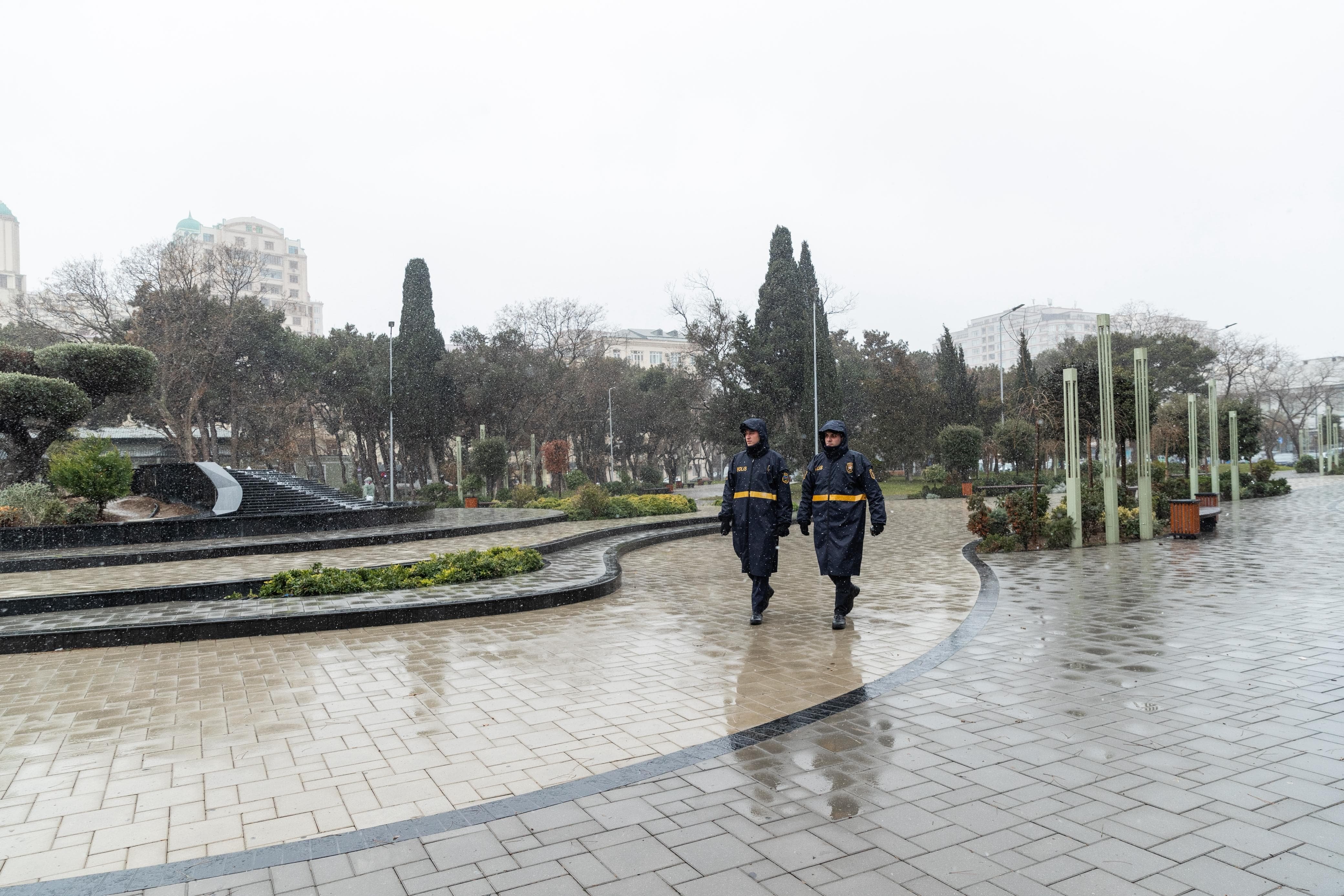 Mövcud hava şəraiti ilə bağlı vətəndaşların təhlükəsizliyinin təmini məqsədilə polis naryadları küçə və prospektlər boyu xidmətə cəlb ediliblər.