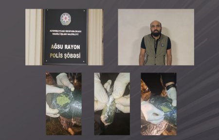 Ağsu Rayon Polis Şöbəsinin əməkdaşlarının keçirdikləri əməliyyat zamanı narkotik vasitələrin qanunsuz dövriyyəsi ilə məşğul olan, əvvəllər də analoji əmələ görə məhkum olunmuş 34 yaşlı Tale Məmmədli saxlanılıb.