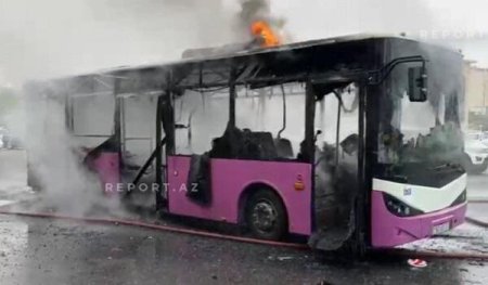 Sumqayıtda avtobus tamamilə yandı