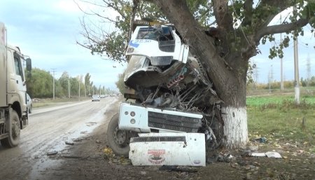 Şəmkirdə yük maşını ağaca çırpıldı, ölən var