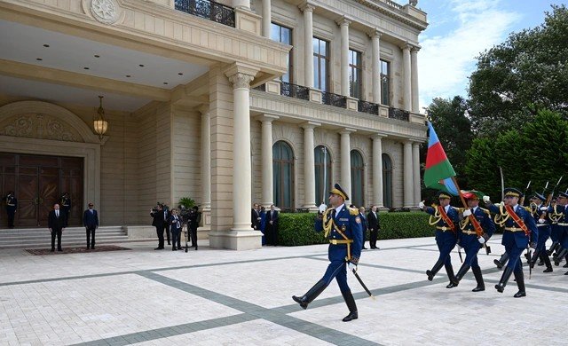 Fəxri qarovul dəstəsi hərbi marşın sədaları altında Azərbaycan Prezidenti İlham Əliyevin və Ruanda Prezidenti Pol Kaqamenin qarşısından keçib.